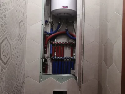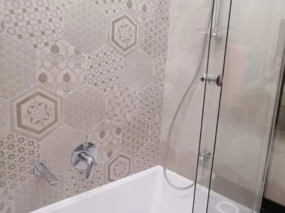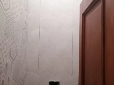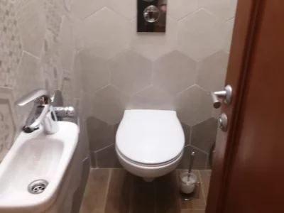 Наша компания выполнила евроремонт раздельного санузла в квартире в районе станции метро Академическая. В ходе проведения ремонтных работ мы полностью демонтировали инженерные коммуникации и старую отделку. Для облицовки поверхностей была использована прочная керамическая плитка с декоративным узором. Мы установили новые водопроводные и канализационные трубы, а также смонтировали новое сантехническое оборудование: акриловую ванну, умывальник с тумбой, а также подвесной унитаз с инсталляцией. Изюминкой интерьера раздельного санузла стала организация неординарной системы освещения: точечные светильники скрыты за подвесным потолком. На выполнение ремонта потребовалось чуть больше двух месяцев.