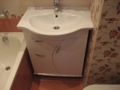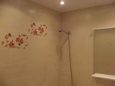 Наша компания выполнила капитальный ремонт санузла в квартире, расположенной на бульваре Кавказский. В результате демонтажных и ремонтно-отделочных работ помещение приобрело аккуратный современный вид. В комнате удалось компактно расположить полноразмерную ванну, двухстворчатый мойдодыр, стиральную машинку, унитаз и полотенцесушитель. Воздухогон облицован керамической плиткой с цветочным рисунком. На остальные поверхности уложена однотонная плитка. Потолок оформлен пластиковыми панелями, в которые вмонтированы точечные светильники. Для освещения зеркала используется небольшое бра. Общая смета составила 122800 руб. На черновые материалы ушло 30900 р.