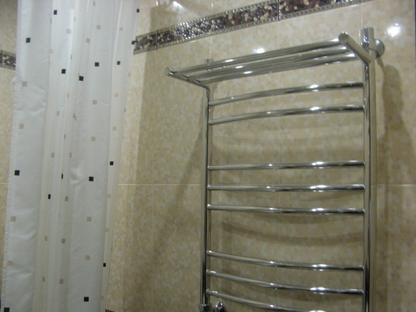 Наша компания выполнила ремонт ванной комнаты и туалета на улице Коломенская. Солидности интерьеру придают светло-бежевые и коричневые цвета, используемые при отделке поверхностей. Примечательно, что для облицовки нижней части стены и защитного экрана использовалась разноцветная мозаика. В комнате установлены ванна с гибким душем, штанга для штор, электрический полотенцесушитель и мойдодыр. В туалете смонтирован унитаз, а инженерные коммуникации замаскированы под общий интерьер. Общая смета ремонта — 125 тыс. руб. Черновые материалы — 34 тыс. р.