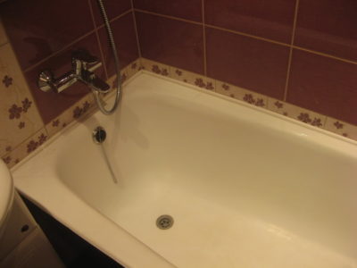 Наша компания выполнила ремонт ванной комнаты на улице Полярная в нежно-розовом и приглушенно бордовом цветах. В ходе работ мы демонтировали старую отделку и сантехнику, заменили дверной проем, установили новую дверь, а также смонтировали ванну и умывальник с тумбой. На пол уложили керамическую плитку темно-красного цвета, а стену украсили кафелем с цветочным принтом. Потолок оформлен белыми пластиковыми панелями. Общая стоимость ремонта составила 66 тысяч рублей. Цена черновых материалов — 23 тыс. руб.